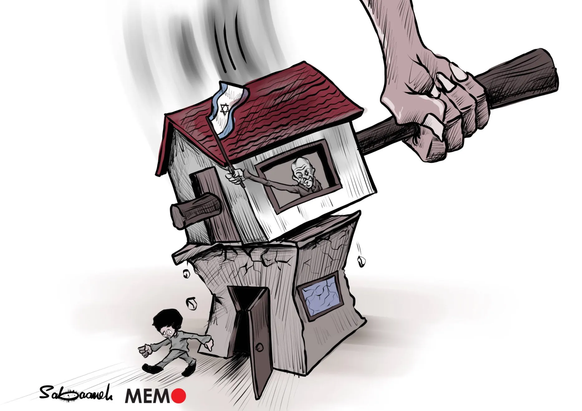 Israel destrói casas palestinas e aprova novas casas de assentamentos israelenses – Charge [Sabaaneh/Monitor do Oriente Médio]