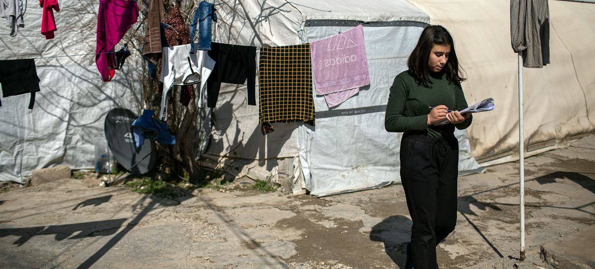 Uma menina Yazidi de 14 anos se prepara para um exame no campo de Shekhan para deslocados internos. [Diego Ibarra Sánchez/UNICEF]