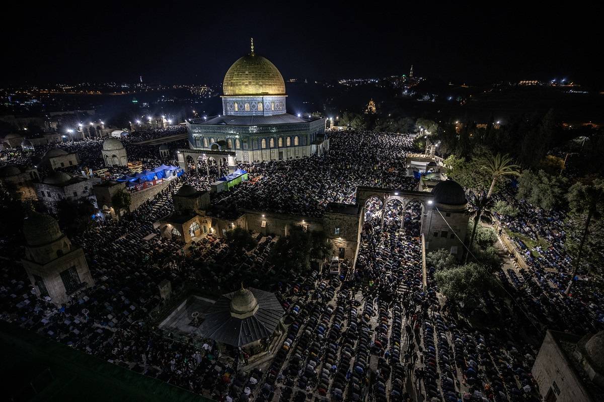 Mais de um quarto de milhão de fiéis palestinos celebraram a Laylat al-Qadr ( Noite do Decreto) na Mesquita Al-Aqsa nesta segunda-feira (17), apesar das restrições de segurança israelenses. Trata-se da noite mais importante do calendário islâmico, no mês sagrado do Ramadã.