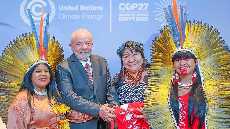 Lula, após eleito, foi convidado para a Conferência do Clima (COP 27) de 2022, no Egito, e participou ao lado de futuras integrantes e colaboradoras de seu ministéro.[Ricardo Stuckert]