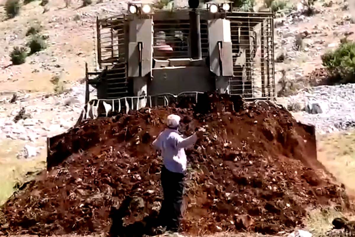 Fazendeiro libanês se coloca contra avanço de escavadeira israelense