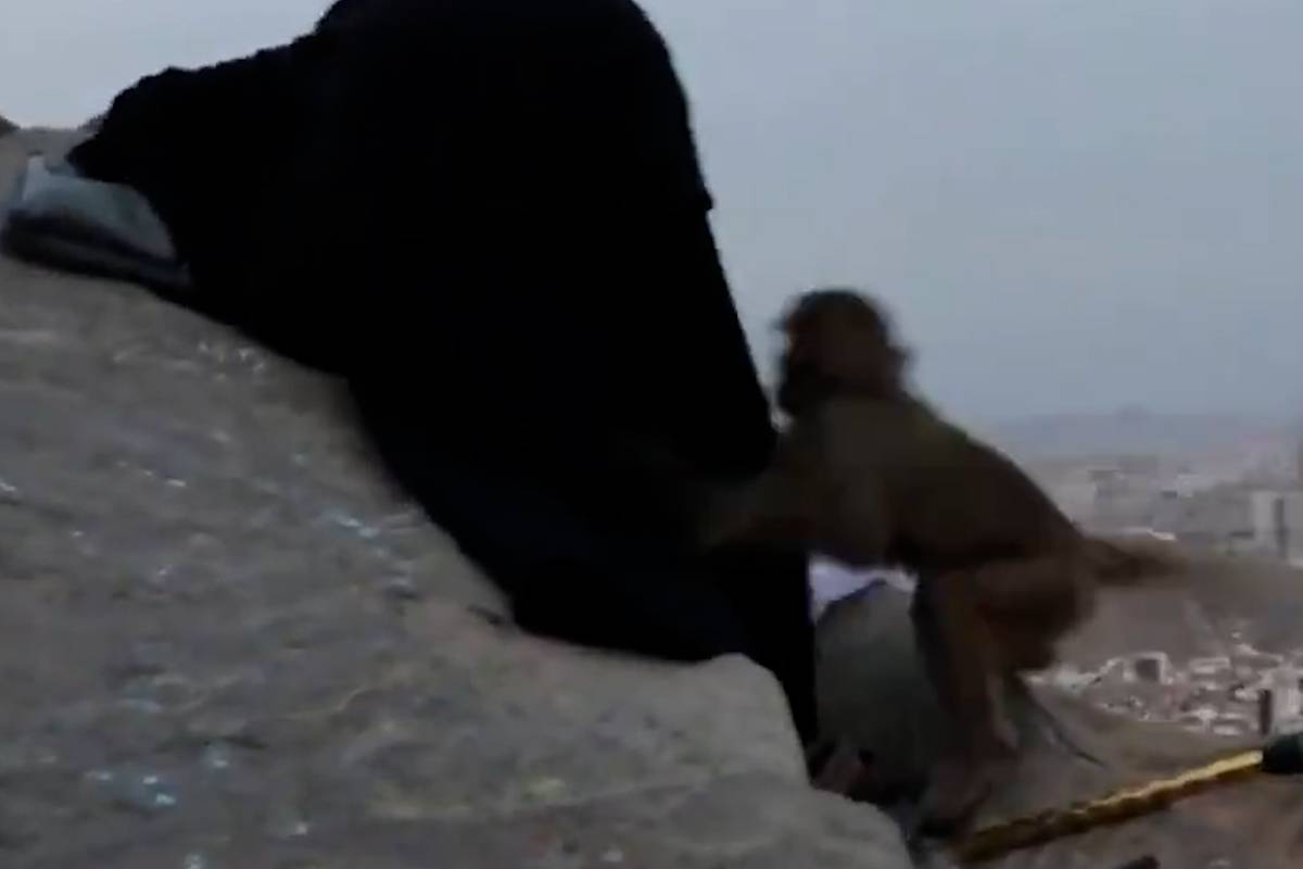 Travessuras do Hajj: Macaco rouba lenço de peregrina muçulmana