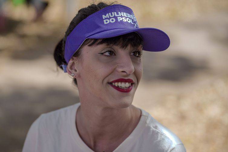 Carolline Sardá (suplente de deputada federal – Psol/SC), no Pavilhão de Exposições do Parque da Cidade, em Brasília, para a 7ª Marcha das Margaridas. [Rafa Neddermeyer/Agência Brasil]