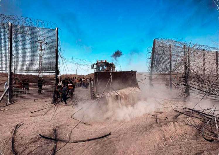 Palestinos cruzaram hoje em numerosos pontos e com relativa facilidade o muro fronteiriço ao longo da Faixa de Gaza, construído por Israel ao custo de 1,1 bilhão de dólares. No dia 7 de dezembro de 2021, o governo israelense anunciou a conclusão da barreira, que tem 65 quilômetros de extensão, e na qual trabalharam cerca de 200 mil funcionários durante três anos, utilizando dois milhões de metros cúbicos de betão.