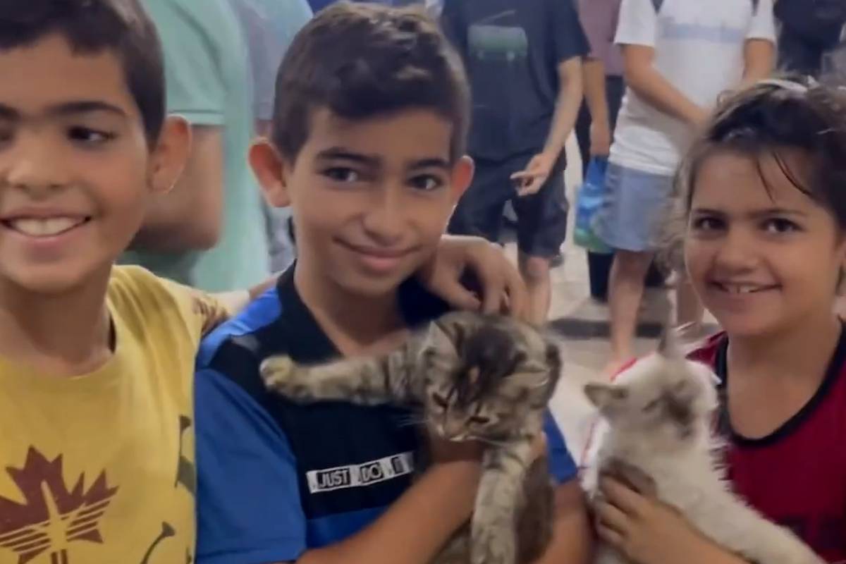 Crianças em Gaza tentam salvar seus mascotes dos bombardeios