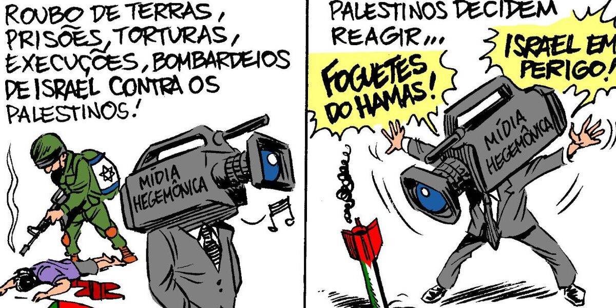 Os principais grupos de mídia brasileiros estão mais alinhados do que durante o governo de Jair Bolsonaro (2019-2022) e reproduzem a posição pró-Israel. Os conglomerados de comunicação estavam divididos apoiando ou criticando o governo protofascista de Jair Bolsonaro (um aliado estratégico de Netanyahu) e apoiador incondicional do Estado sionista. No período de 2019 a 2022, podemos afirmar que as Organizações Globo, Grupo Folha, o conservador O Estado de São Paulo e até o Grupo Abril estiveram na oposição ao governo com mais militares na história do Brasil. Já as redes de televisão Record, SBT e Rede TV se alinharam incondicionalmente com a administração de neoliberais e neofascistas. O Grupo Bandeirantes tinha alguma equidistância. Passados dez meses da posse de Lula, a uniformidade retoma a antiga dinâmica do início do século XXI. Diante de um genocídio palestino à vista, de forma quase totalizante, terminam se comportando como os meios de comunicação estadunidenses.