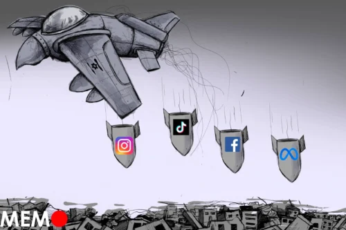 Plataformas de mídia social estão reprimindo jornalistas e ativistas que fazem reportagens de Gaza – Cartoon [Sabaaneh/Monitor do Oriente Médio]