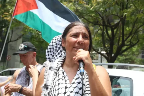 Ela ressalta que são “13 milhões de palestinos no mundo, 6 milhões em campos de refugiados impedidos do legítimo direito de retornar, milhares na diáspora, outra metade submetida a mais de 75 anos na contínua Nakba, a catástrofe palestina [palavra árabe que se refere ao êxodo de palestinos de áreas que se tornariam Israel]”.