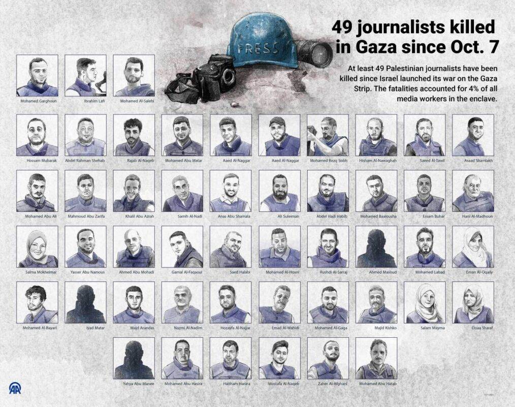 As Nações Unidas declararam o jornalismo como uma das profissões mais perigosas do mundo. No momento em que este artigo foi escrito, um número sem precedentes de cinquenta jornalistas foram mortos em Gaza, dois estão desaparecidos e mais de trinta ficaram feridos como resultado dos atuais bombardeios excessivos e desproporcionais de Israel na Faixa de Gaza, em comparação com todo o período de 2002 a 2022, quando Israel matou 44 jornalistas na Palestina.