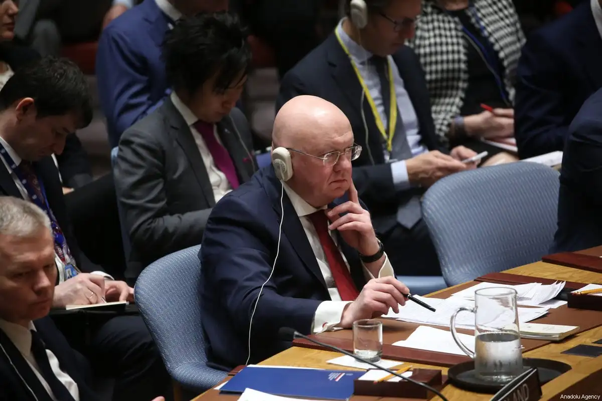 Durante coletiva de imprensa, o embaixador russo nas Nações Unidas, Vasily Nebenzya, pediu que a Resolução 2712, única do Conselho de Segurança aprovada até então sobre Gaza, seja adotada.