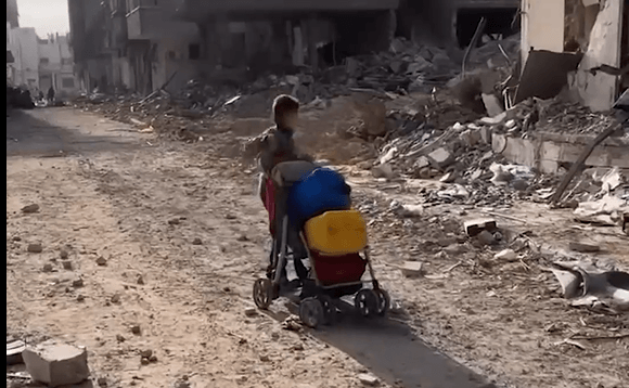 Criança palestina busca água para sua família
