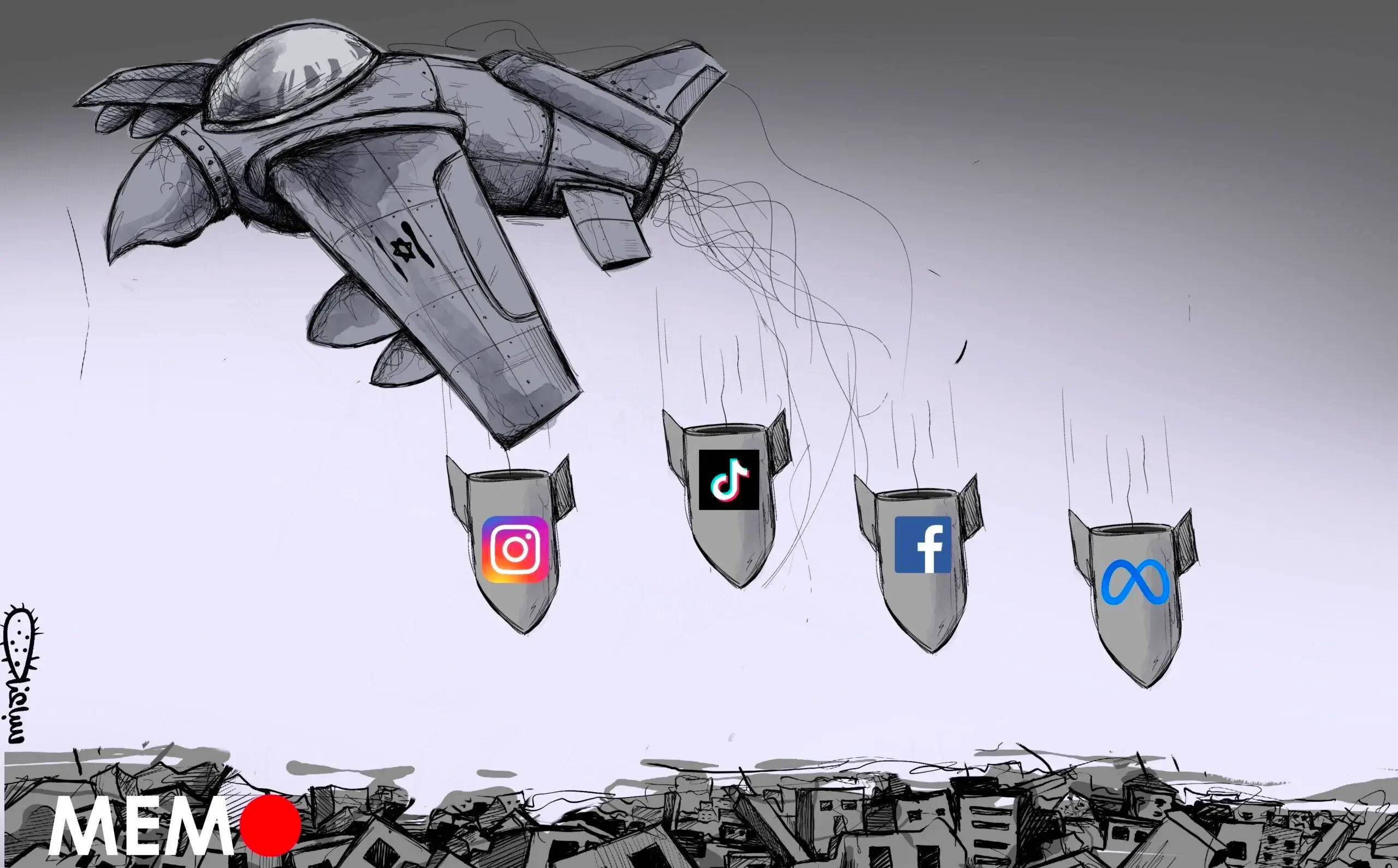Plataformas de mídia social estão reprimindo jornalistas e ativistas que fazem reportagens de Gaza – Cartoon [Sabaaneh/Monitor do Oriente Médio]