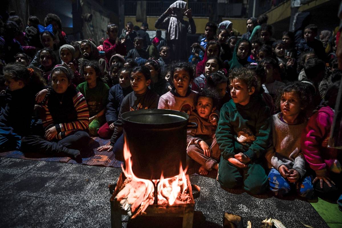Palestinos que tiveram que fugir de suas casas para garantir sua segurança contra os ataques israelenses, se refugiaram em uma escola na cidade Rafa, Gaza, para celebrar o Lailat al Mira, importante feriado religioso muçulmano. Em 8 de fevereiro de 2024. [ Abed Zagout/Agência Anadolu]