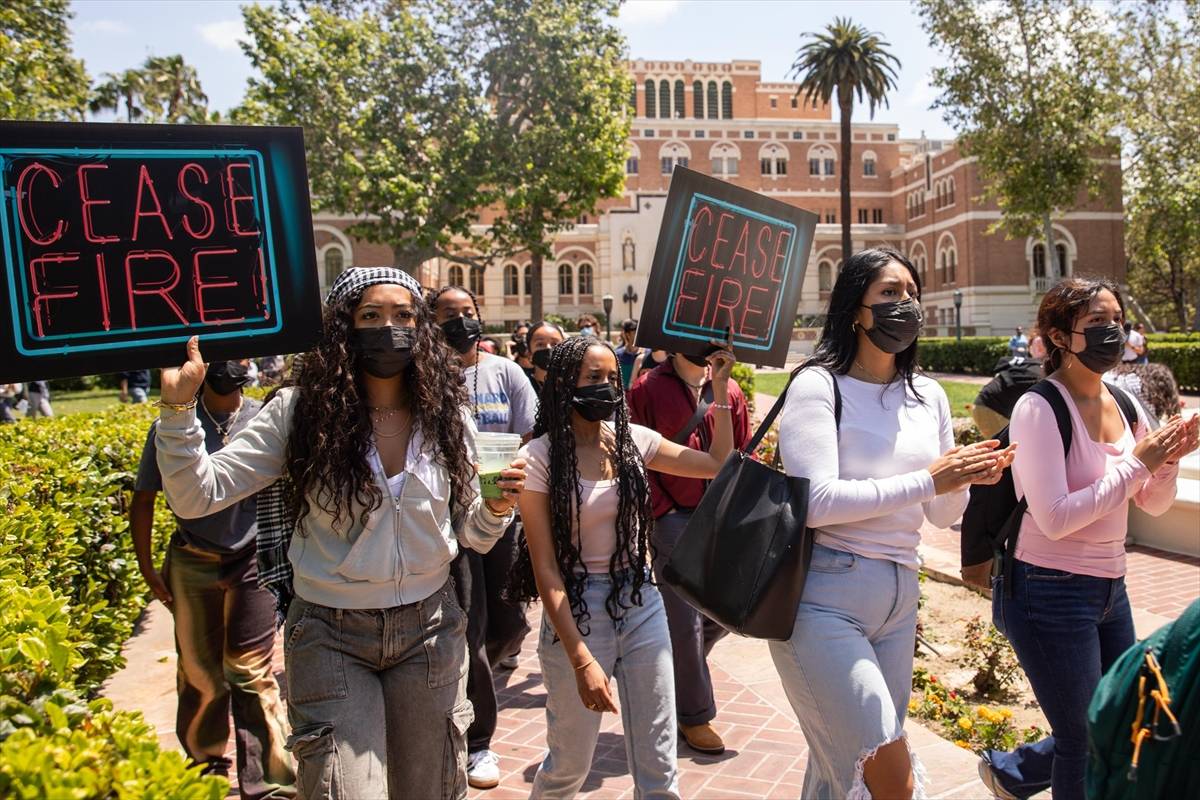 Os atos pró-Palestina se espalharam por todo o país, desde a costa leste, do Oceano Atlântico, até o Pacífico, se estendendo à Universidade do Sul da Califórnia (USC) e à Universidade Brown, de Rhode Island, segundo informações da agência Anadolu.