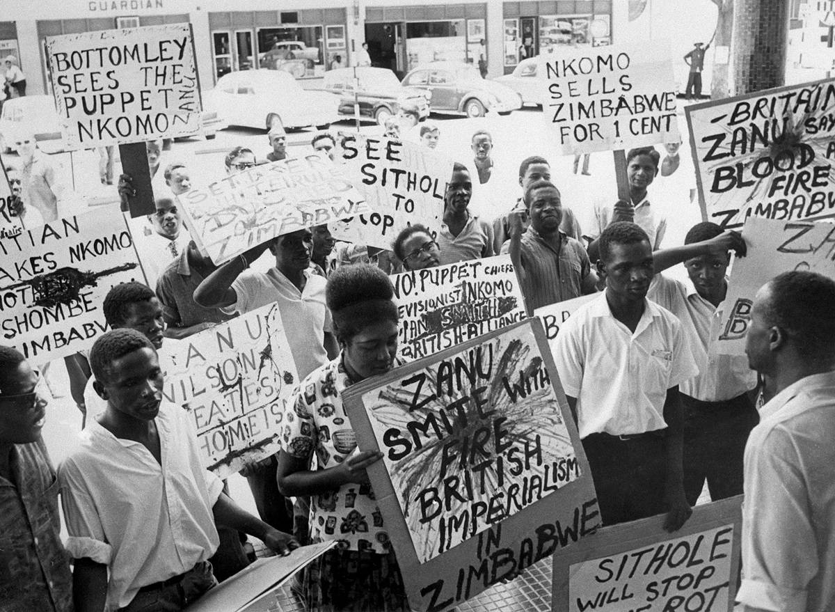 Protesto contra o imperialismo britânico e sua relação com o regime na Rodésia (Zimbábue) em Dar Es Salaam, na Tanzânia, em 5 de março de 1965 [Bettmann via Getty Images]