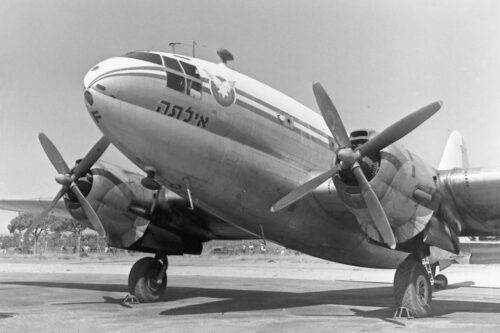 Construido em Buffalo, NY, em 1943, usado na guerra, recomprado Al Schwimmer para a Service Airways e depois registrado no Panamá para a Lineas Aéreas de Panamá, S.A. (“LAPSA”) como RX-137. O registro no Panamá foi cancelado em 17 de setembro de 48. Para a Força Aérea de Israel (“IAF”), número de série. 1707, maio de 48. Registrado na EL AL como 4X-ACE, em 24 de janeiro de 50.