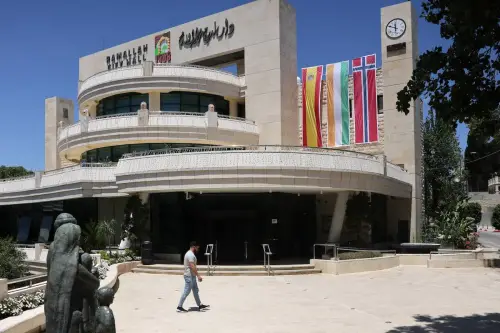 Um homem caminha do lado de fora do prédio da prefeitura na cidade de Ramallah, na Cisjordânia, adornado com as bandeiras da Espanha, Irlanda e Noruega. A Irlanda, a Noruega e a Espanha disseram que reconheceriam formalmente o Estado da Palestina em 28 de maio, atraindo elogios dos líderes palestinos e de muitos países do mundo árabe e muçulmano, e a fúria de Israel. ,[Ahmad Gharabli /AFP via Getty Images]