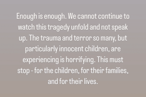 “Basta! Já chega!”, disse o piloto da equipe Mercedes em um story do Instagram compartilhado nesta semana. “Não podemos continuar a assistir essa tragédia se desenrolar sem falar nada. O trauma e o horror que são muitos estão enfrentando — especialmente as crianças inocentes — é apavorante”.