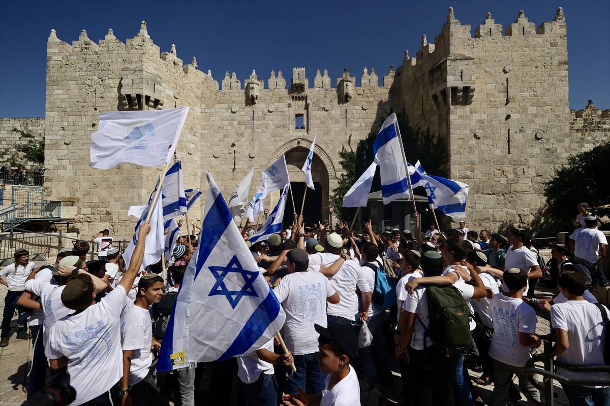 Milhares de colonos com bandeiras alvicelestes tomaram as ruas da Cidade Velha de Jerusalém — sobretudo os bairros árabes. Palestinos nativos foram forçados a fechar as lojas sob ameaças de crime de ódio.