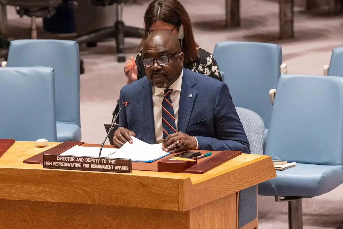 Adedeji Ebo, diretor adjunto da Alta-Representação das Nações Unidas para Assuntos de Desarmamento, durante sessão do Conselho de Segurança, na cidade de Nova York, em 30 de agosto de 2024 [Lev Radin/Pacific Press/LightRocket via Getty Images]