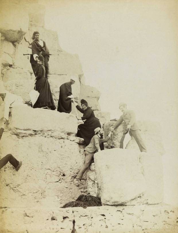 “Parecem pequenas até chegar a elas e só se faz ideia da altura da grande pirâmide quando se observam os que por ela trepam e vão-se tornando cada vez menores”, escreveu Dom Pedro em seus diários, parte do extenso arquivo do Museu Imperial de Petrópolis, no Rio de Janeiro. “Subi facilmente ajudado pelos árabes e no cimo reunimo-nos mais de trinta … Logo que atingimos o alto da pirâmide soltamos muitos hurrahs, agitamos os lenços”.