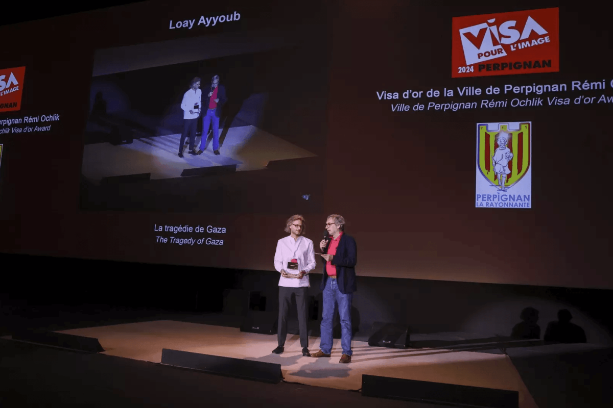 O fotógrafo palestino Louay Ayoub ganhou o prestigioso prêmio Visa Pour l’Image Festival por sua reportagem em vídeo “A Tragédia de Gaza”. O festival, o maior evento internacional dedicado ao fotojornalismo, começou sua 36ª edição no último final de semana em Perpignan, França.