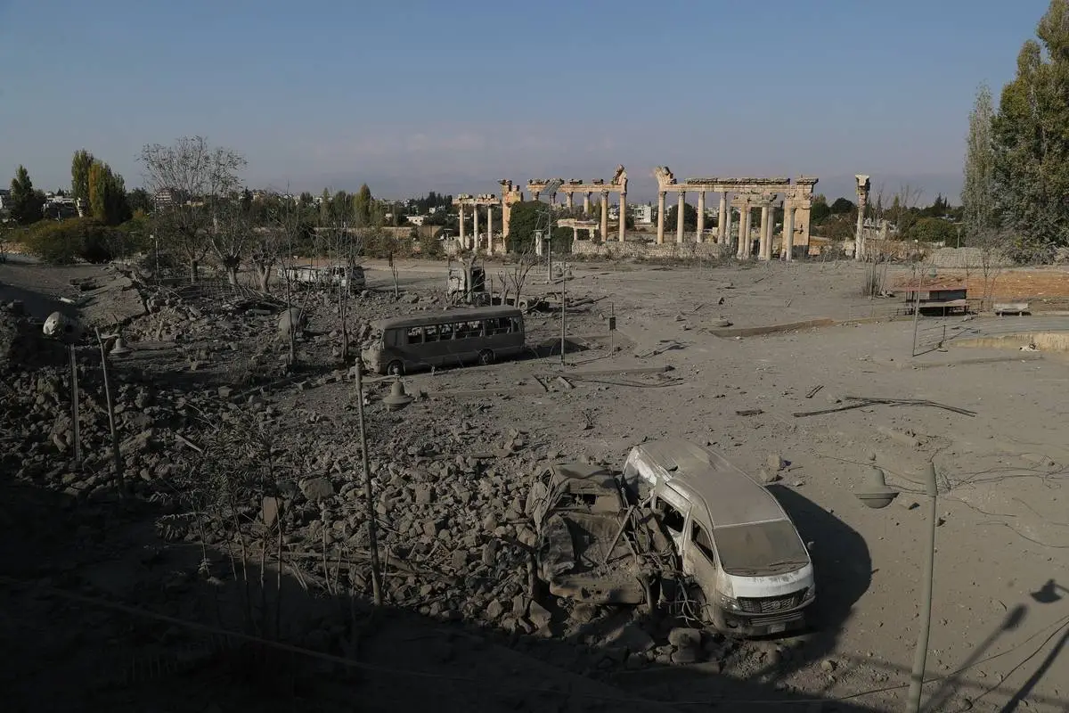 Destroços cinzentos e metais retorcidos tomaram a paisagem nesta quinta-feira (7), junto de um ônibus carbonizado, a algumas dezenas de metros dos templos históricos, um dia após uma onda de ataques israelenses matar 40 pessoas na região.