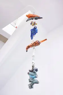 Foi então que surgiu seu trabalho com cerâmica, a começar em 2019, que ascendeu cada vez mais sobre sua obra prévia, concentrada em performances de vídeo. A cerâmica virou protagonista de suas exibições, sobretudo a atual. Cada peça tem detalhes que a tornam única, sejam técnicas ou motivos, que podem remeter ao sangue, ou mesmo os números repetidos à exaustão, que evocam as vítimas do genocídio em Gaza.