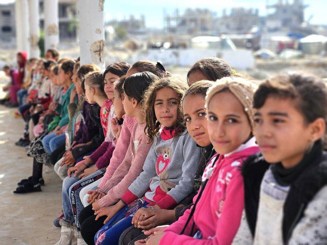 Sob ataques israelenses, estudantes continuam seus estudos em um cemitério em Khan Yunis, Gaza. Milhares de estudantes foram privados de educação na cidade, pois os ataques de Israel a Gaza deixaram um ano para trás. Os estudantes que vivem na cidade de Khan Yunis, no sul da Faixa de Gaza, continuam a sua educação com instalações limitadas num cemitério devido à destruição de escolas da cidade e à transformação de algumas delas em centros de abrigo. [Hani Alshaer/Agência Anadolu]