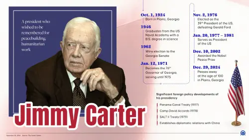O ex-presidente Jimmy Carter morreu aos 100 anos, tornando-se o presidente com maior longevidade na história dos EUA [Nuray Yüksel/Agência Anadolu]