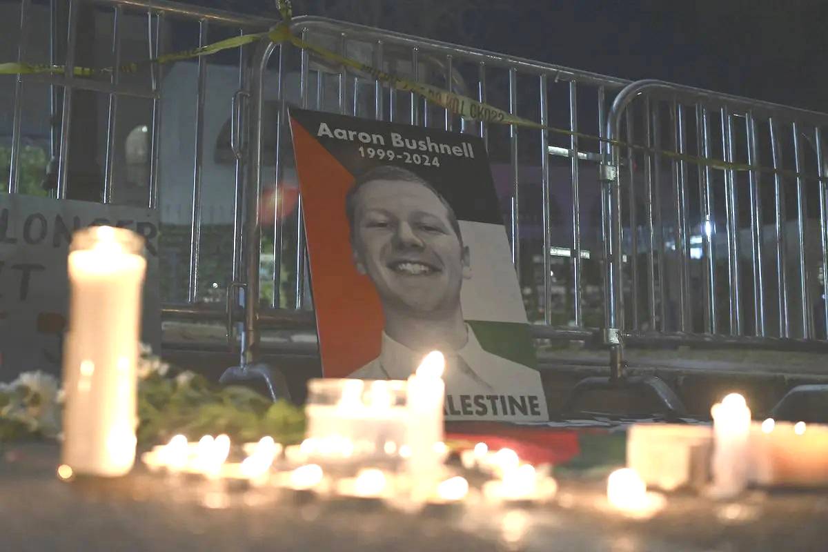 Em fevereiro de 2024, Bushnell ateou fogo ao próprio corpo em frente à missão israelense na capital americana, ao denunciar abertamente os crimes israelenses em Gaza, com anuência da então gestão democrata de Joe Biden.