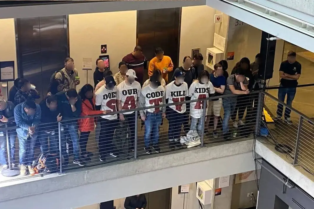 Enquanto o diretor executivo (CEO), Satya Nadella, apresentava seus novos produtos na sede da empresa em Redmond, no estado de Washington, um grupo de trabalhadores, posicionados em um mezanino a sua direita, revelou camisetas com os dizeres: “Nosso código mata crianças, Satya?”
