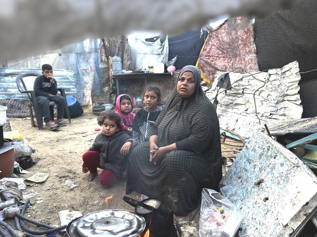 Mulheres palestinas que vivem em tendas improvisadas lutam para sobreviver em condições adversas nos campos de refugiados na Faixa de Gaza. Para as mulheres de Gaza, que se tornou uma “zona fantasma” devido aos ataques de Israel nos últimos 16 meses, o Dia Internacional da Mulher, 8 de março, é mais uma vez marcado pela fome, sede e pobreza. [Abdul Hakim Abu Riash, Abdul Hakim Abu Riash,Mahmoud Abu Hamda e Ashraf Amra /Agência Anadolu]