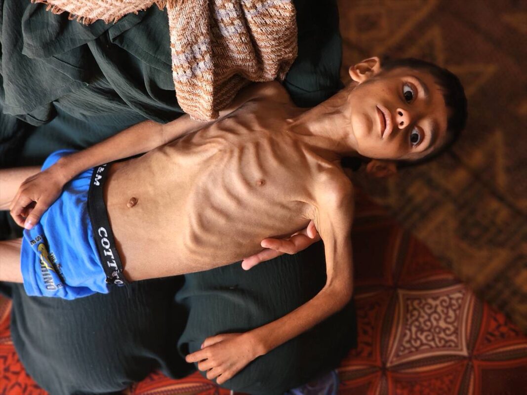 Uma criança palestina chamada Osama Kamal Al Rakab, lutando pela sobrevivência na cidade de Beni Suheyl, enfrenta fraqueza corporal relacionada à desnutrição. Desde 2 de março, Israel fechou completamente as passagens para ajuda humanitária e continua seus ataques, aprofundando a crise de medicamentos e alimentos. Muitas crianças palestinas morreram em consequência da desnutrição e da falta de tratamento. Khan Yunis, Gaza em 14 de abril de 2025. [Hani Alshaer/Agência Anadolu]Uma criança palestina chamada Osama Kamal Al Rakab, lutando pela sobrevivência na cidade de Beni Suheyl, enfrenta fraqueza corporal relacionada à desnutrição. Desde 2 de março, Israel fechou completamente as passagens para ajuda humanitária e continua seus ataques, aprofundando a crise de medicamentos e alimentos. Muitas crianças palestinas morreram em consequência da desnutrição e da falta de tratamento. Khan Yunis, Gaza em 14 de abril de 2025. [Hani Alshaer/Agência Anadolu]
