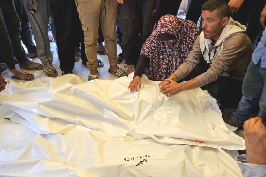 A médica palestina Alaa al-Najjar, pediatra do Complexo Médico Nasser, ficou devastada com a chegada dos corpos e restos mortais de nove de seus filhos ao hospital onde trabalha. Eles morreram queimados em um ataque aéreo israelense contra a casa de sua família na área de Qizan al-Najjar, ao sul de Khan Yunis, no sul da Faixa de Gaza.