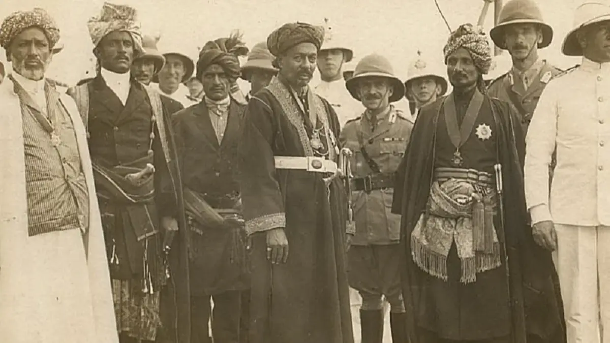 Oman, como o Nepal a leste, não integrava oficialmente o Raj, mas era governado como um protetorado informal pelo vice-rei da Índia, incluindo uma lista de principados indianos, sob controle direto do Reino Unido. Segundo Dalrymple: “A lista padrão de principados até mesmo abria em ordem alfabética, com Abu Dhabi, e o próprio vice-rei, Lorde Curzon, argumentou que Omã deveria ser considerado ‘tão parte do Estado nativo da Índia como Lus Beyla ou Kalat”.