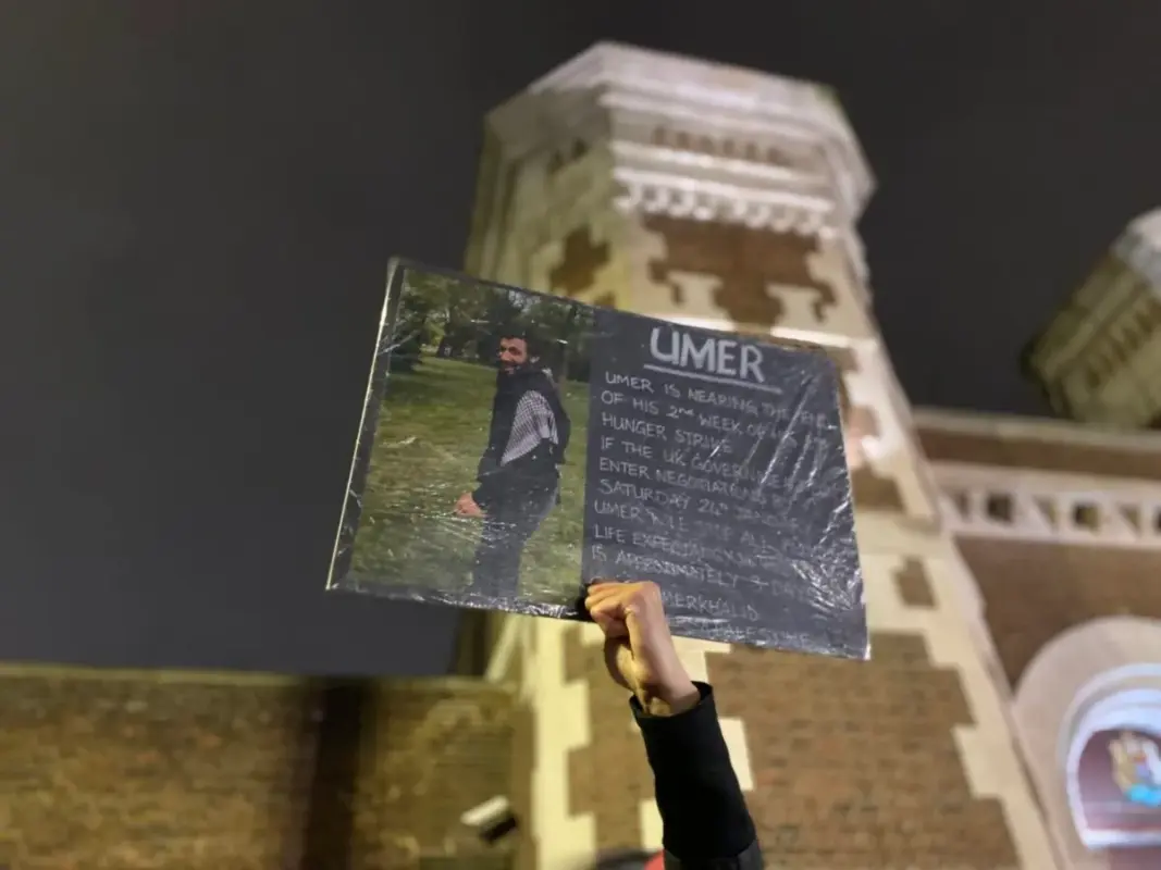 A ong Prisoners for Palestine reafirmou: “Na noite passada [sábado], vimos uma resposta violenta e desproporcional da polícia a manifestações em frente a Wormwood Scrubs, à medida que Umer entrou em seu segundo dia de greve de sede”.