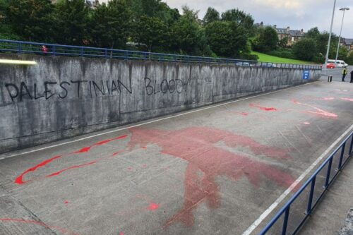 Estádio de futebol é pintado com ‘sangue palestino’, às vésperas de Escócia vs. Israel