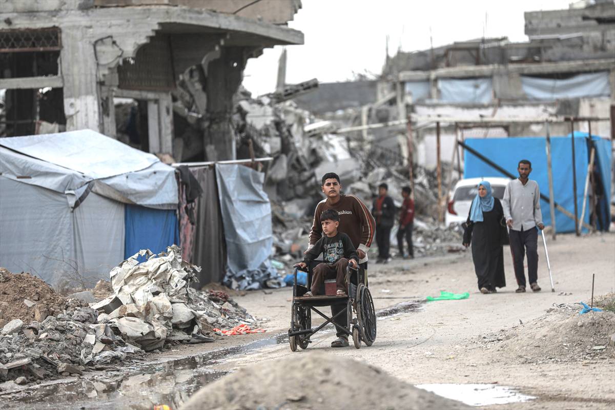 Os palestinos continuam suas vidas diárias em tendas improvisadas montadas entre as ruínas, à medida que aumentam as preocupações sobre a possibilidade de novos ataques israelenses em Beit Hanoun, norte de Gaza, em 5 de março de 2025. [Abdul Hakim Abu Riash/Agência Anadolu]