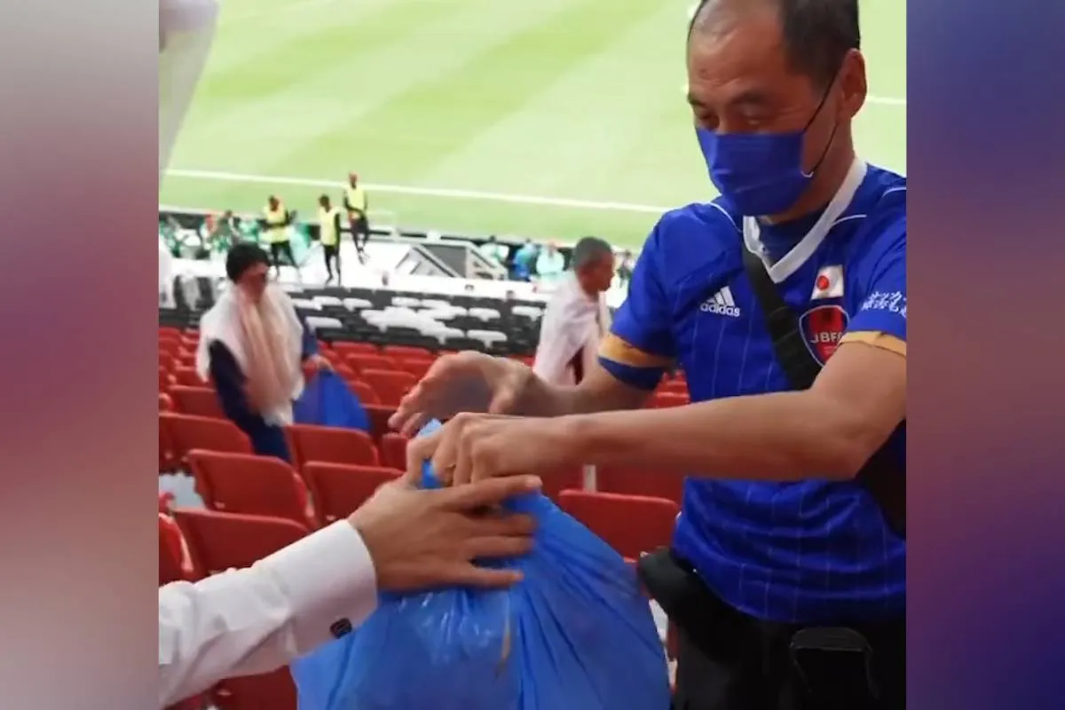 Influencer barenita encontra-se com torcedores japoneses recolhendo lixo