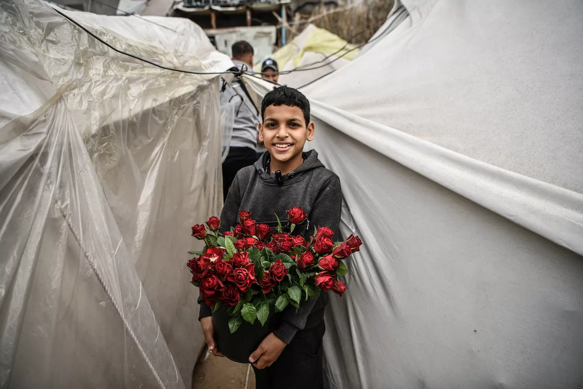 Cenas de Gaza: Rosas trazem alegria ao campo de refugiados de Rafah