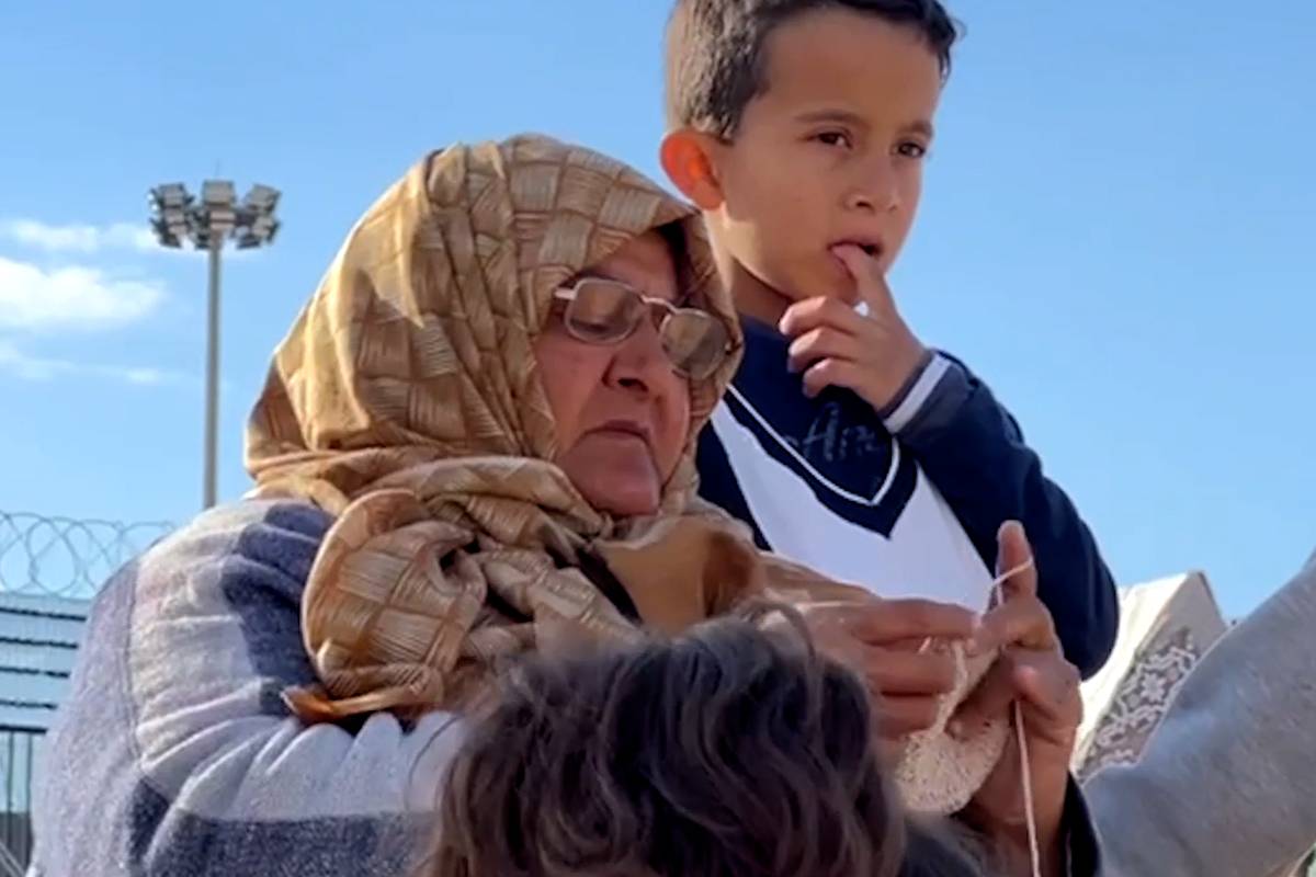 Cenas de Gaza: Vovó refugiada borda casacos e gorros para as crianças