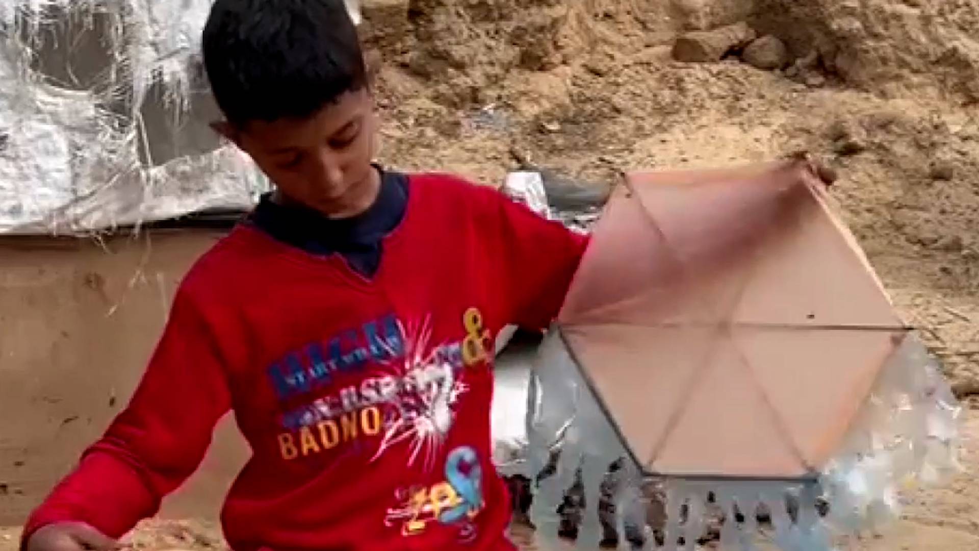 Cenas de Gaza: Menino encontra alegria em fazer e vender pipas