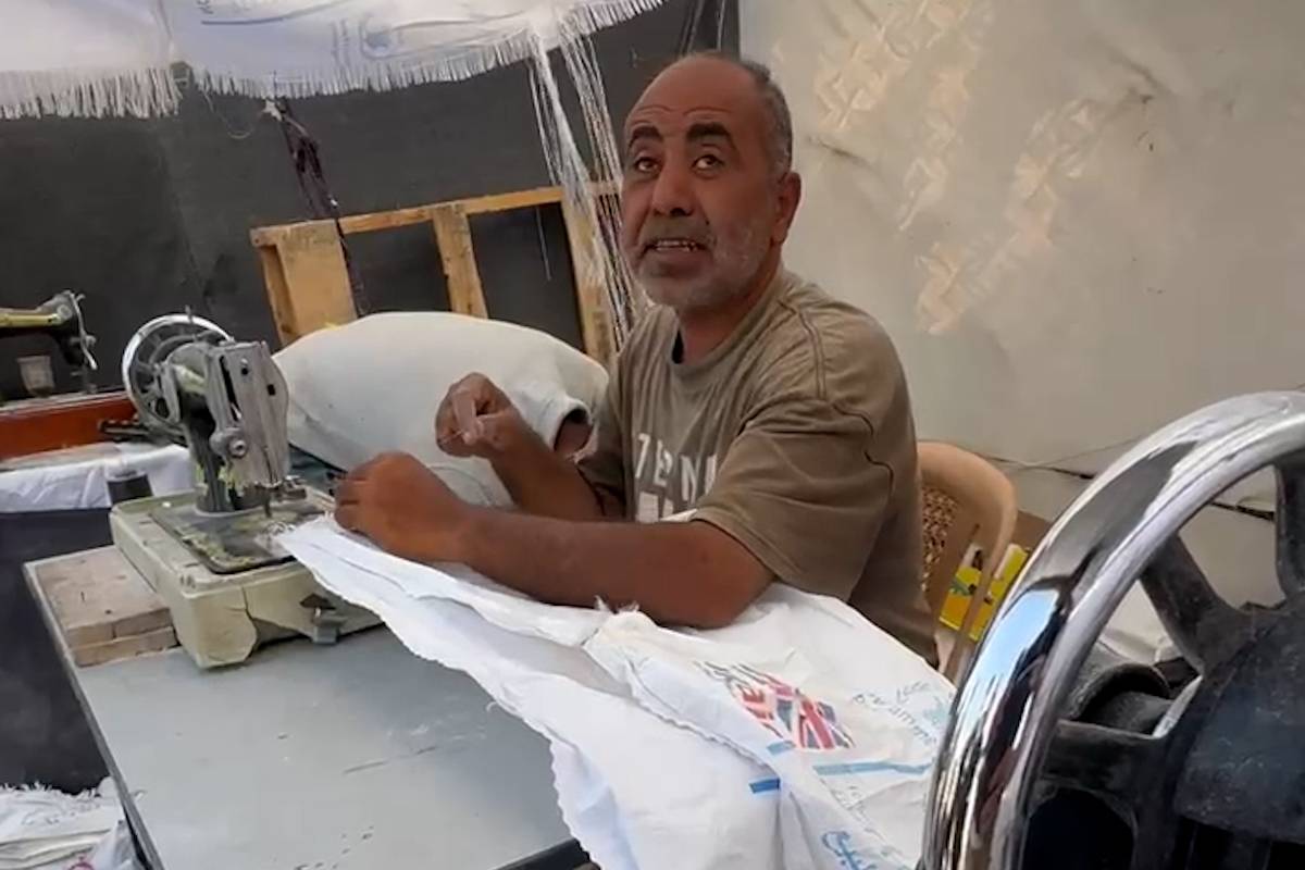 Cenas de Gaza: Costurando tendas com pacotes assistenciais