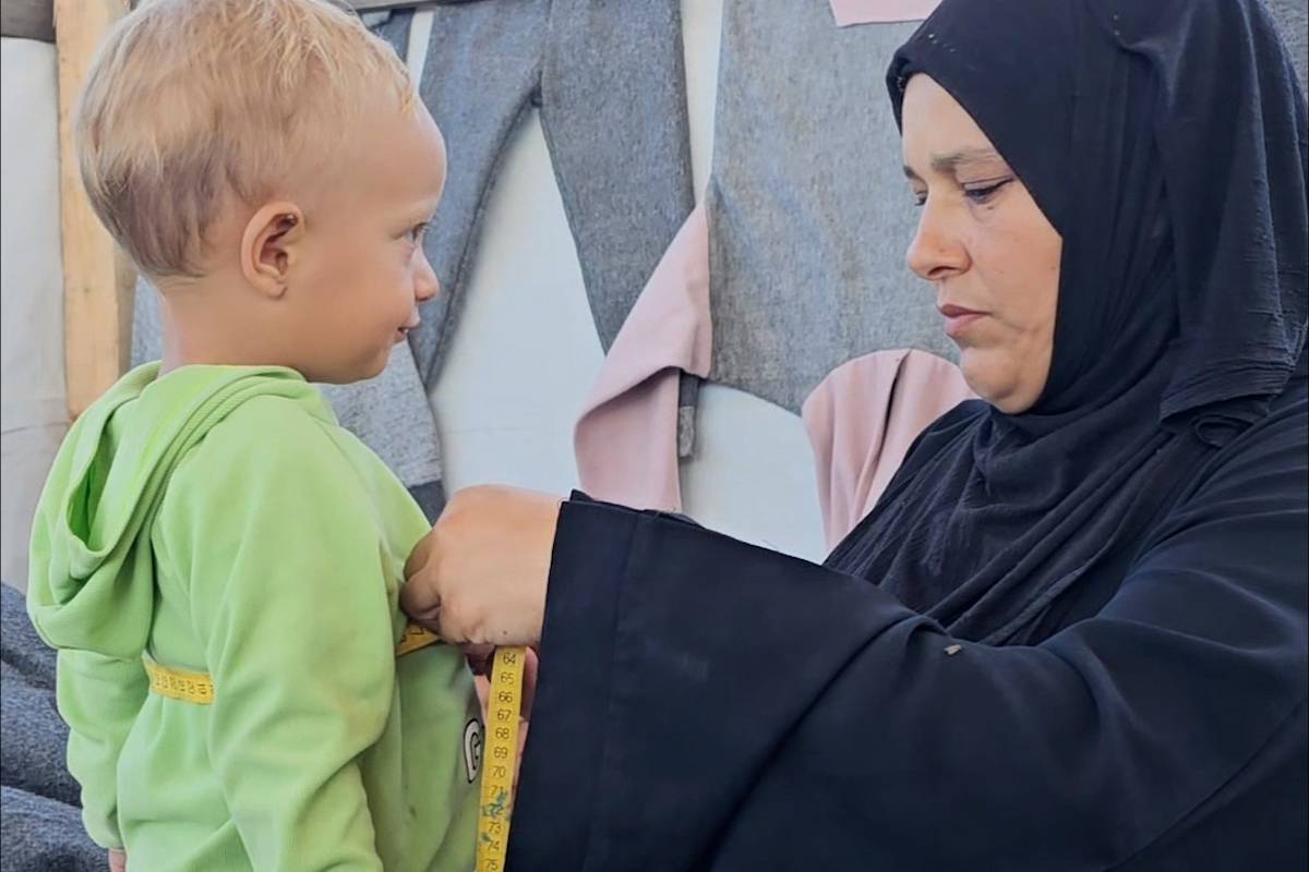 Cenas de Gaza: Mulheres confeccionam roupas nas tendas de refugiados
