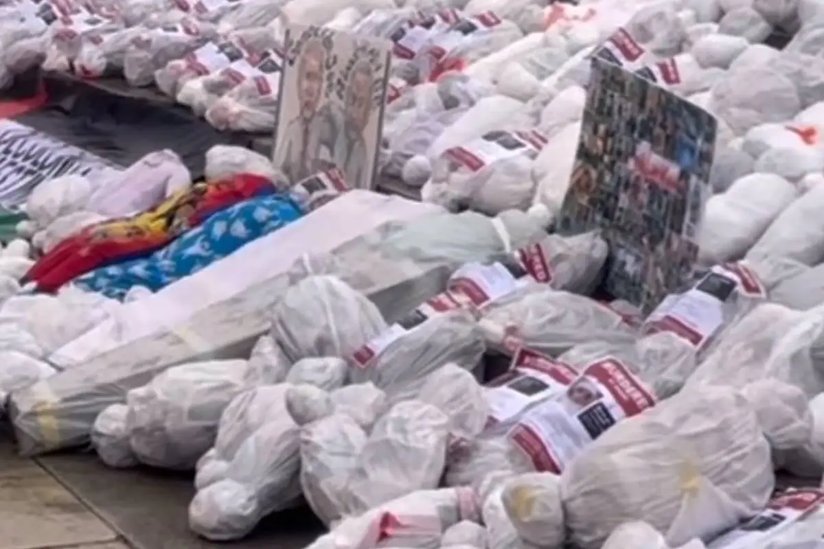 Ato na Pensilvânia condena morte de crianças em Gaza com três mil corpos simbólicos