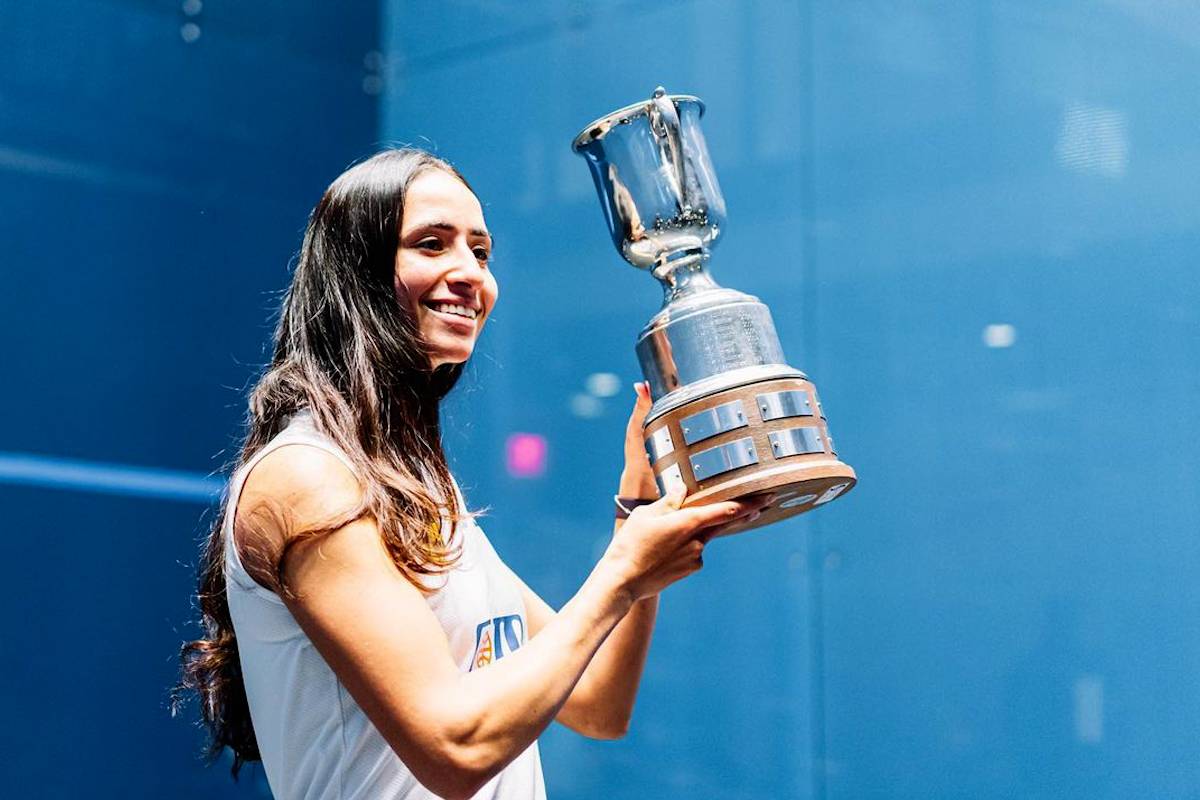 ‘Quase desisti, mas o esporte me faz feliz’, diz atleta egípcia, campeã de squash