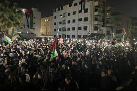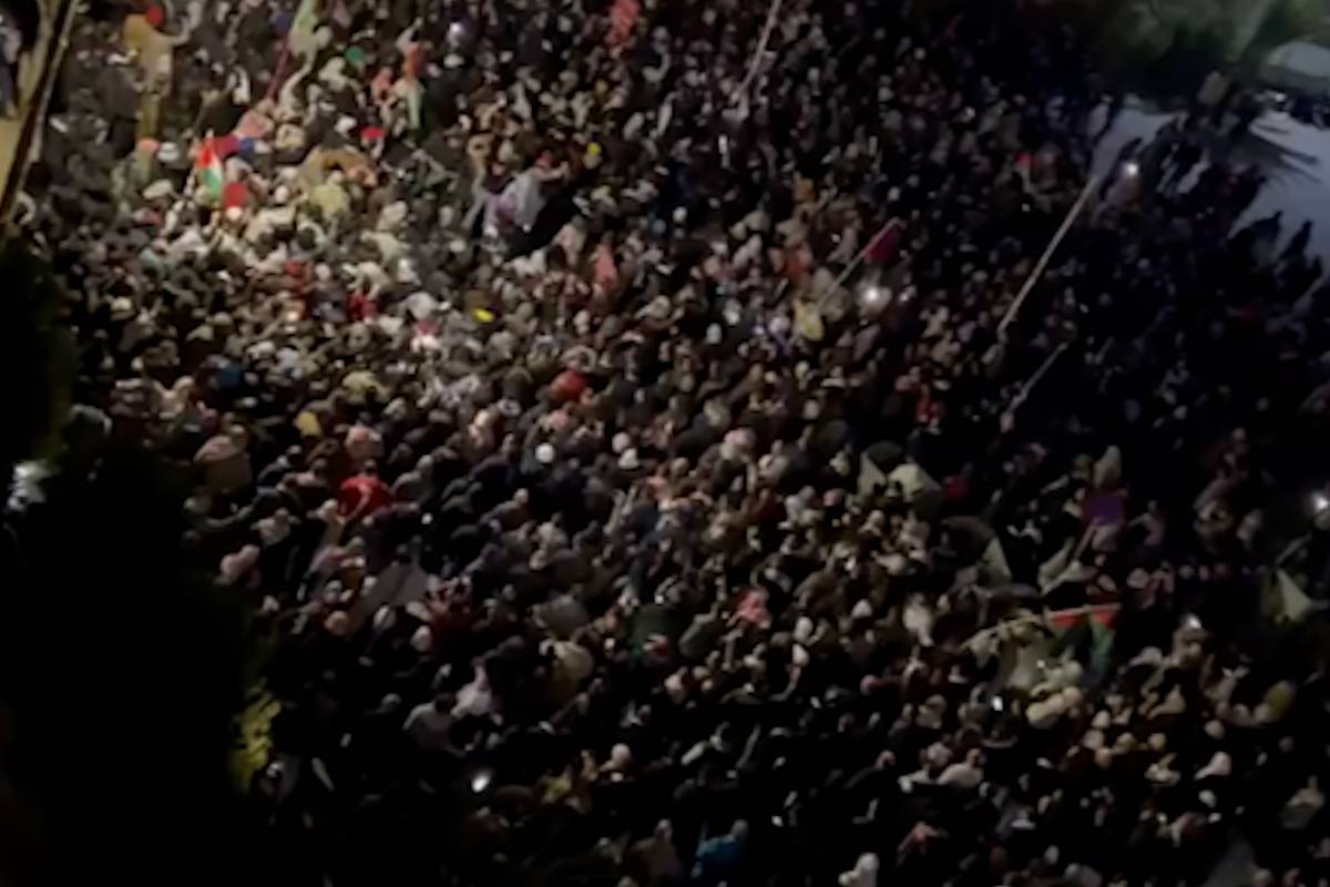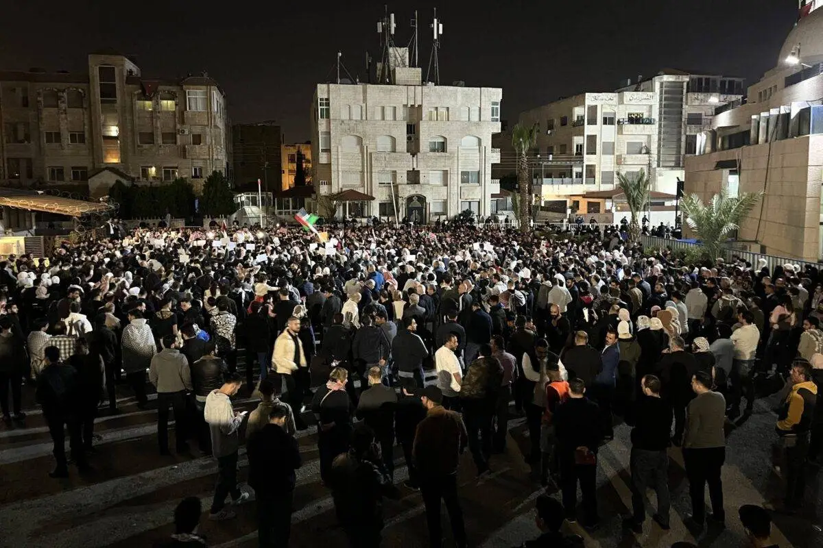 Protestos continuam em frente à embaixada israelense em Amã, capital da Jordânia