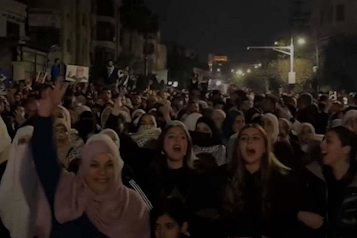 Mulheres jordanianas na linha de frente em manifestação realizada em Amã pelo apoio a Gaza.
