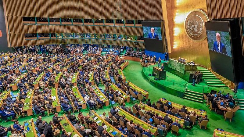 Emir do Catar aborda questões regionais na ONU, condena inação sobre a Palestina
